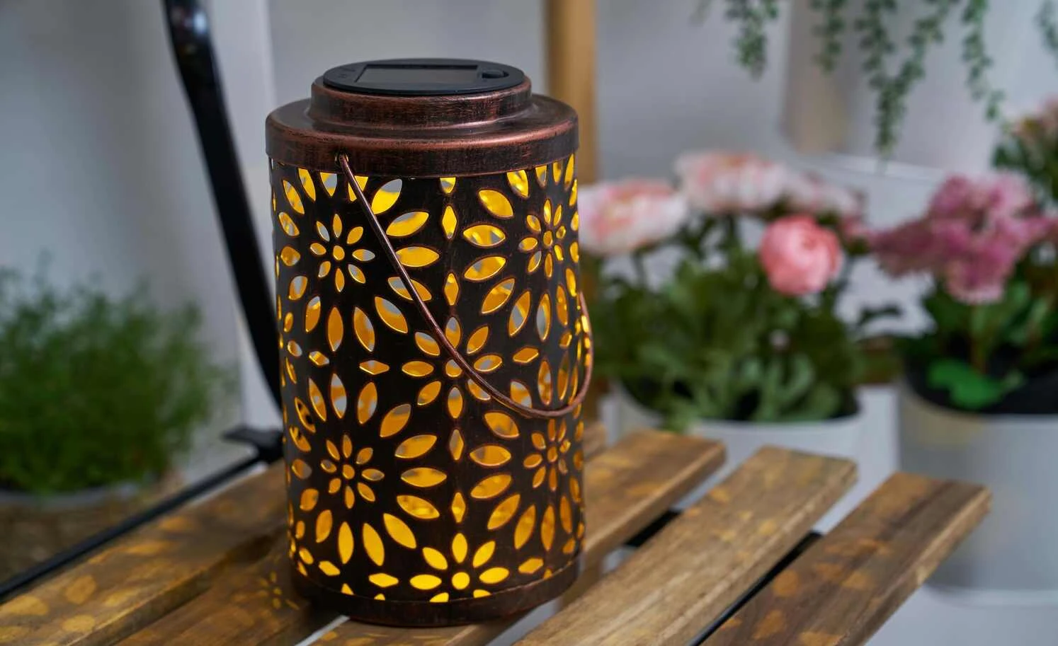 LED-Solar-Tischleuchte, kupferfarben, Laterne
