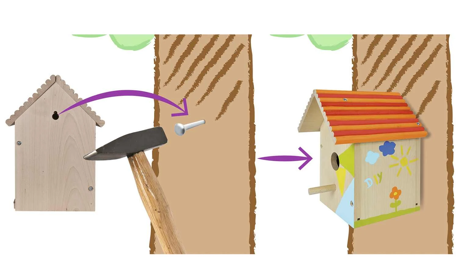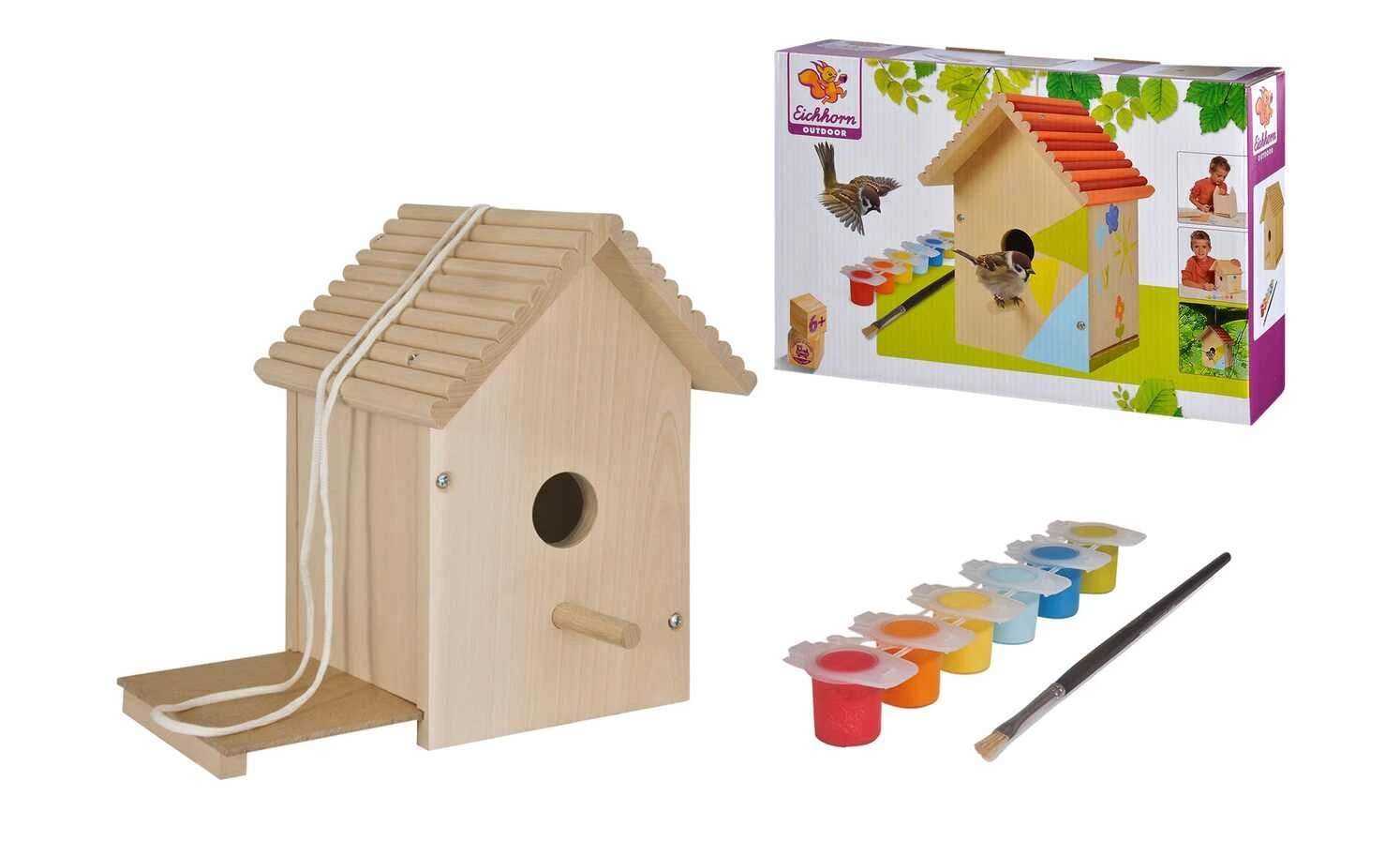 - Lieferumfang / mitgeliefertes Zubehör: inklusive Pinsel und Farben, Vogelhaus zum Zusammenbauen und Bemalen